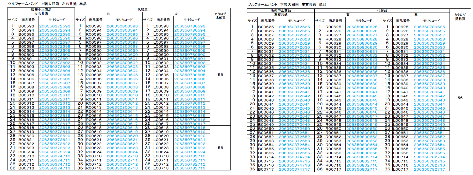 なお、代替品は「ツルフォームバンド大臼歯右用/左用」となり、サイズは左右共通と互換しております。しかしながら、こちらも製造が大幅に遅延しており、一部サイズで既に品切れが発生しております。