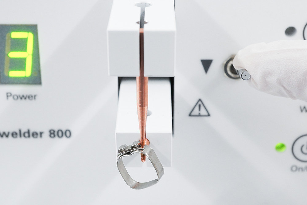 スポットウェルダー タイプ800は、ベストセラーのタイプ700で培った技術とノウハウを活かし、使い易さを向上させると共に、スタイリッシュなデザインへと進化いたしました。歯科矯正用チューブとバンドのスポット溶接機能に加え、オプションの「ヒートトリートテーブル」を装着することで、ワイヤーの熱処理にも使用できます。